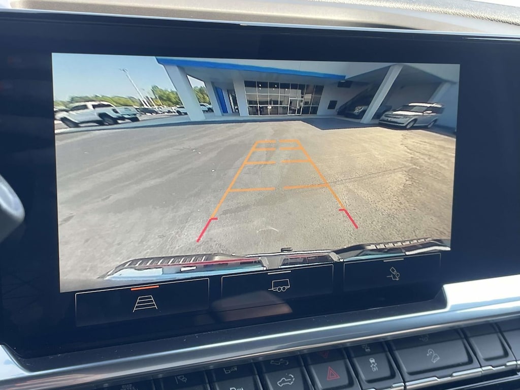 - The vehicle is equipped with a camera that displays an image of the area behind the vehicle on an interior display.