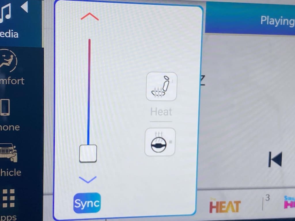 - The steering wheel rim is heated.